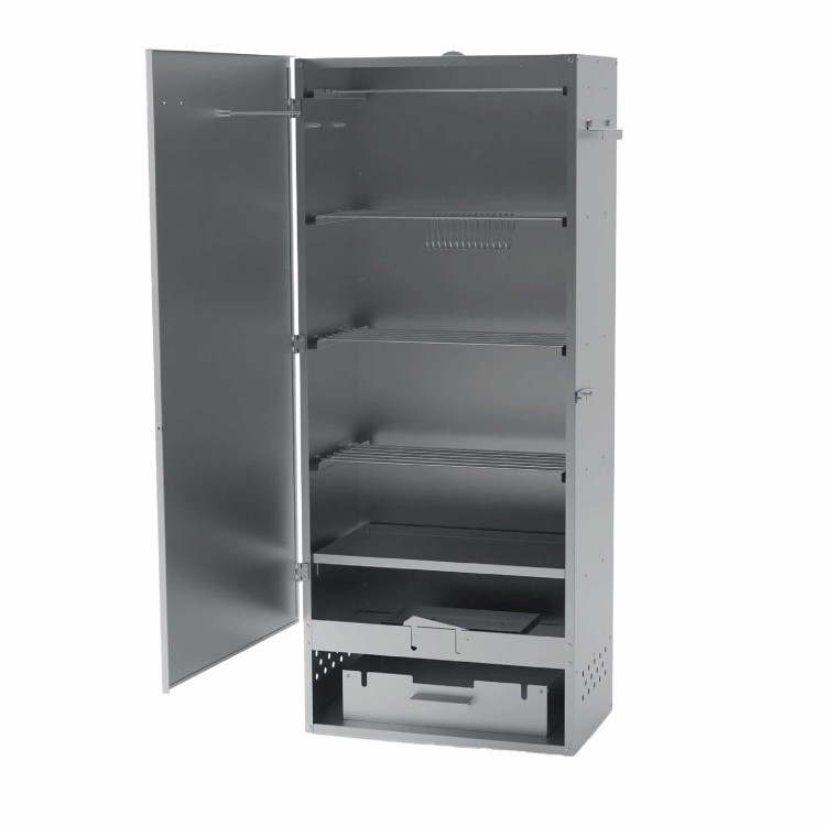Construcția este realizată din oțel inoxidabil , care poate rezista la temperaturi ridicate, umiditate și utilizare pe termen lung. Afumătoarea este stabilă, robustă și gata de utilizare pentru mai multe sezoane.