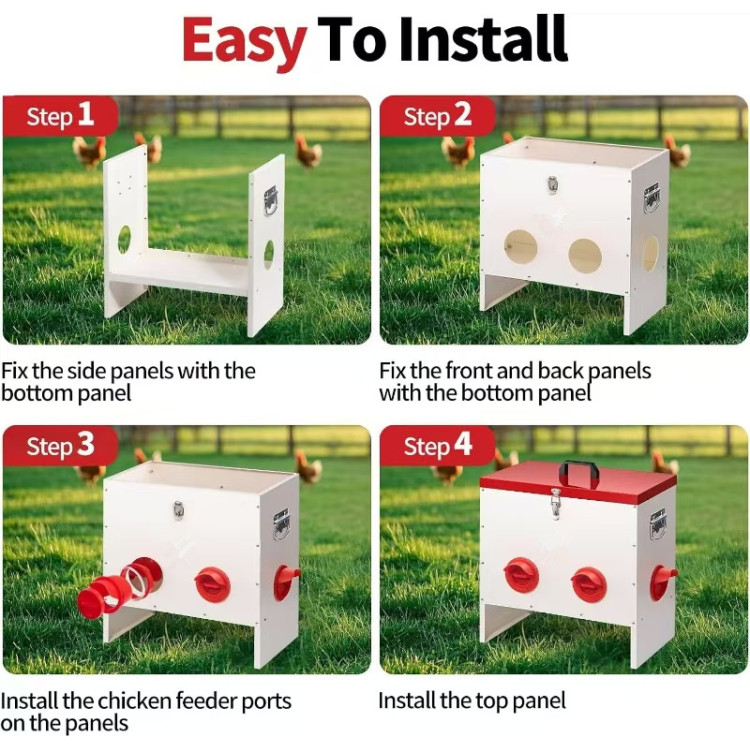 Cele 10 găuri de hrănire vă permit să hrăniți confortabil mai multe găini în același timp, fără stres sau certuri.