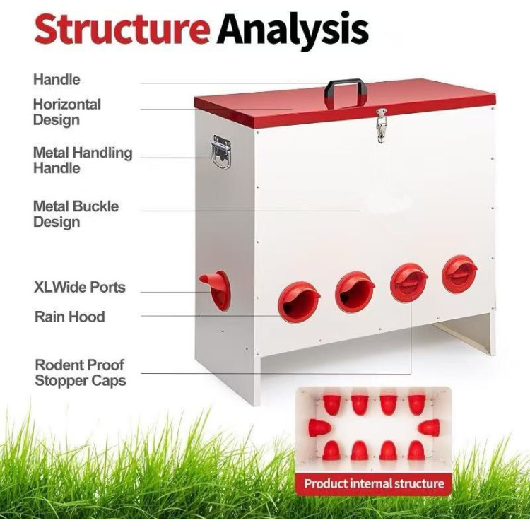 Designul acoperit protejează furajele de ploaie, umiditate și murdărie, limitând în același timp accesul dăunătorilor, cum ar fi rozătoarele sau păsările sălbatice.
