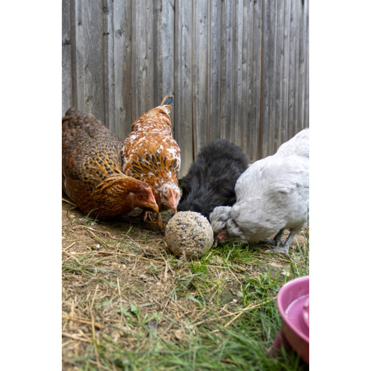 Produsul este destinat găinilor, ca hrană complementară sub formă de bilă de furajare. Are sens în crescătorii unde doriți să combinați hrănirea suplimentară cu o activitate practică și să susțineți comportamentul natural al efectivului. De aceea poate fi utilă atât în cotețul pentru găini, cât și în țarc.