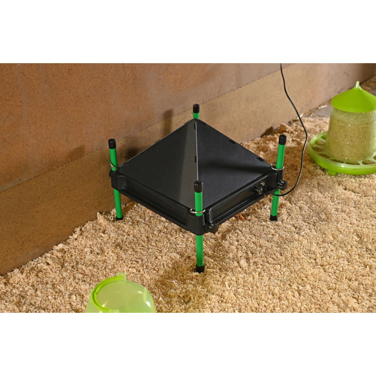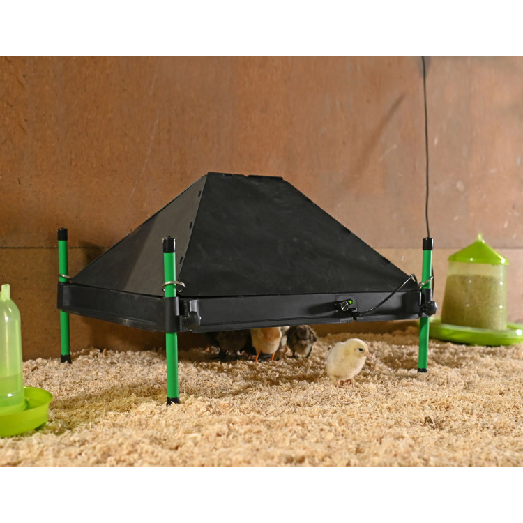 Capac superior practic pentru placa încălzitoare CosyHeat Mini destinată creșterii puilor de găină; ajută la reducerea consumului de energie și împiedică puii să se urce direct pe placă.