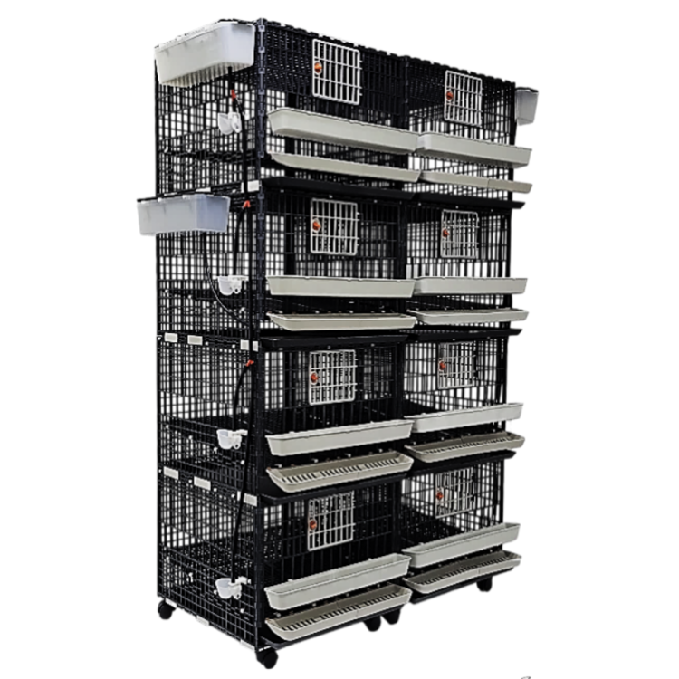 Cușca este realizată din plastic antracit rezistent, ușor de curățat și care nu corodează la contactul cu dejecțiile.