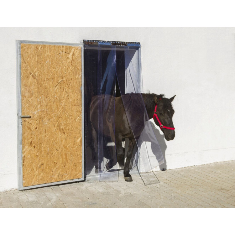 PVC-ul transparent lasă să treacă multă lumină, astfel încât spațiul nu se întunecă inutil nici după separarea zonei de trecere. Vizibilitatea mai bună ajută atât în hală, cât și în grajd și crește siguranța în zonele cu trafic intens.