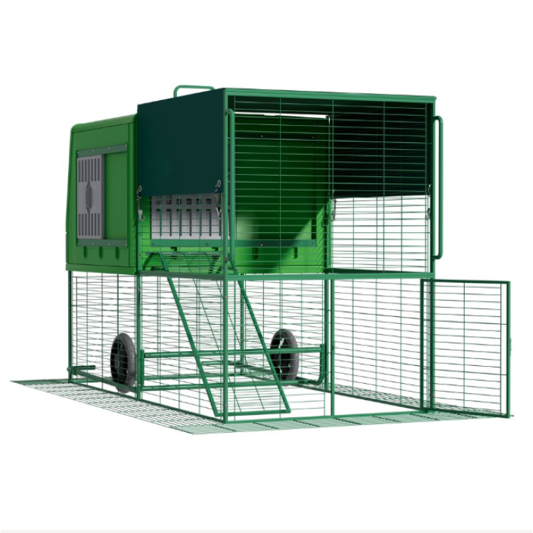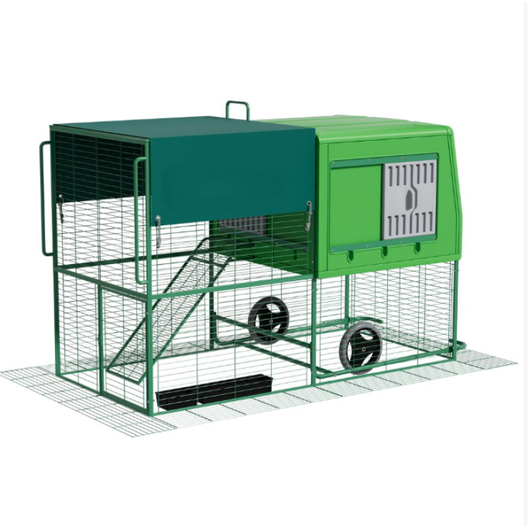 CABANA CU OUĂ combină o zonă închisă de cocoțat și ouat cu un țarc alăturat, oferind găinilor un refugiu sigur și spațiu pentru activități în timpul zilei.