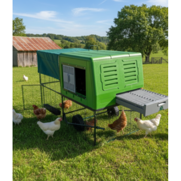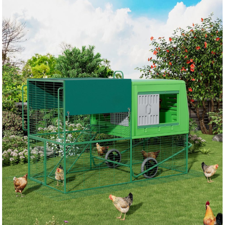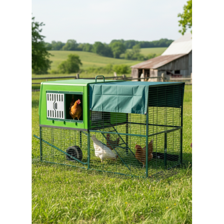 Datorită roților integrate, cotețul poate fi mutat relativ ușor într-o altă parte a grădinii. Mutarea pe iarbă proaspătă susține comportamentul natural al găinilor și ajută la distribuirea uniformă a încărcăturii pe parcelă.