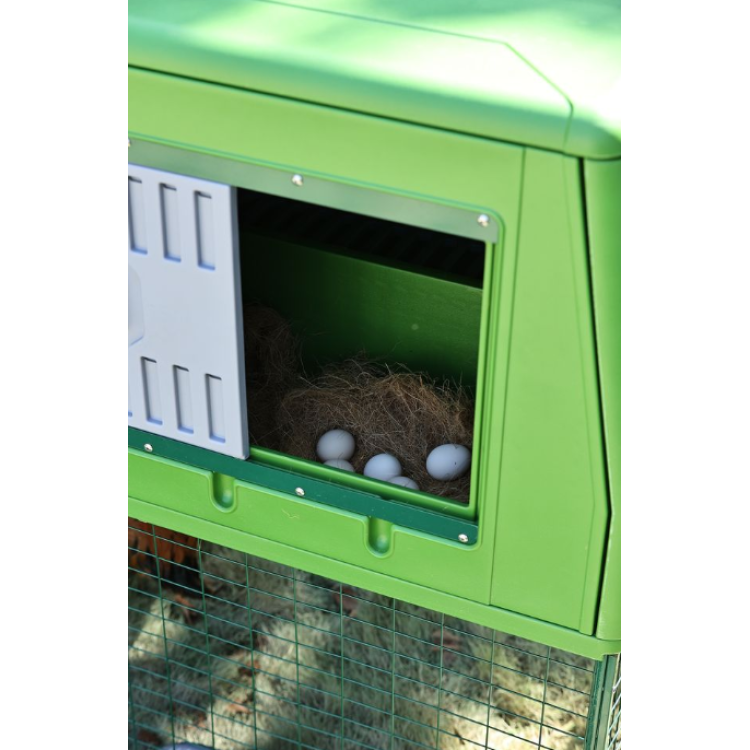Include un cuib separat pentru ouă, care oferă găinilor un mediu liniștit și mai întunecat pentru depunerea ouălor. Separarea cuibului de zona principală contribuie la o curățenie sporită și la o calitate mai bună a ouălor.