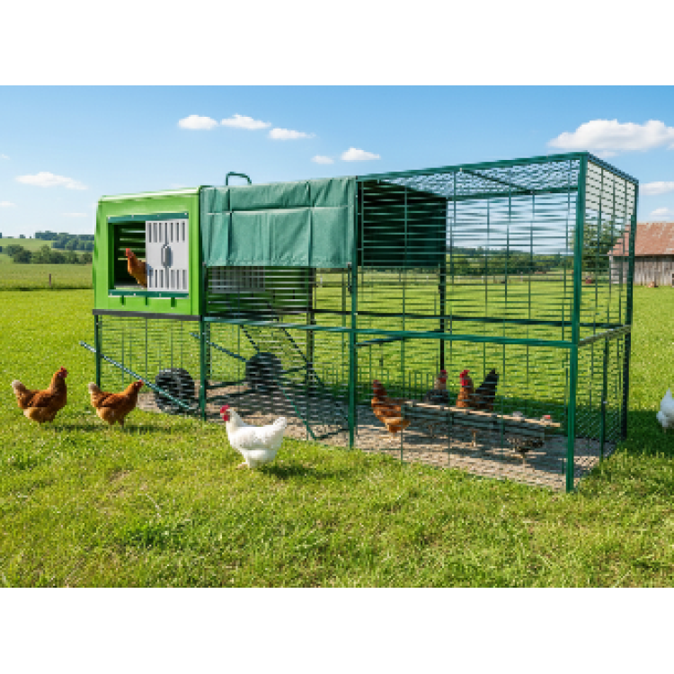 Datorită roților integrate, cotețul poate fi mutat relativ ușor într-o altă parte a grădinii. Mutarea pe iarbă proaspătă susține comportamentul natural al găinilor și ajută la distribuirea uniformă a încărcăturii pe parcelă.