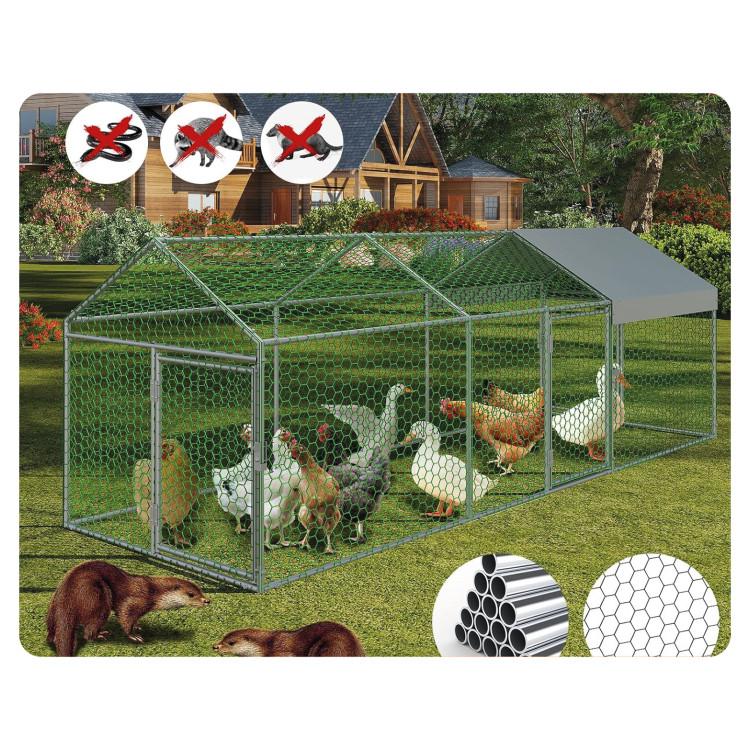 Plasa de sârmă de înaltă calitate creează o barieră puternică împotriva prădătorilor, împiedicând în același timp animalele să evadeze. Structura este concepută pentru a oferi un spațiu exterior sigur pentru exercițiile zilnice.
