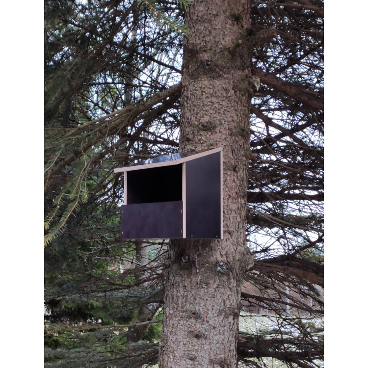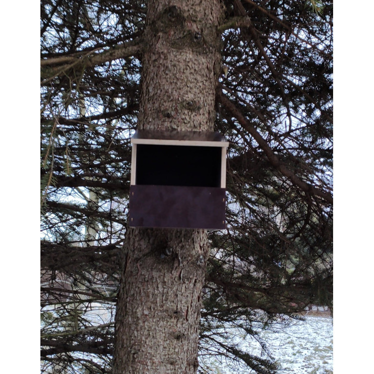 Acest model de căsuță pentru păsări este fabricat din placaj de mesteacăn impermeabil de cea mai bună calitate, cu grosimea de 9 mm , și acoperit cu folie fenilică. Poate fi instalat pe fațadele clădirilor, în locuri expuse la ploaie.