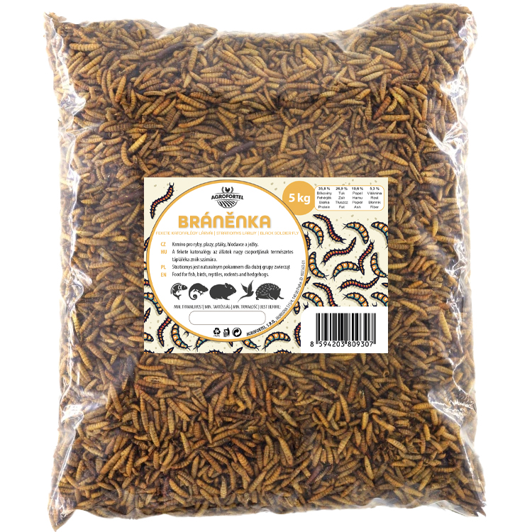 Larvă este o hrană naturală pentru un grup mare de animale. Larvele uscate de muște de poartă reprezintă o hrană suplimentară 100% naturală pentru păsări, pești, reptile și mamifere mici, cum ar fi arici, șoareci și șobolani. Este o alternativă potrivită și mai accesibilă la viermii de făină.