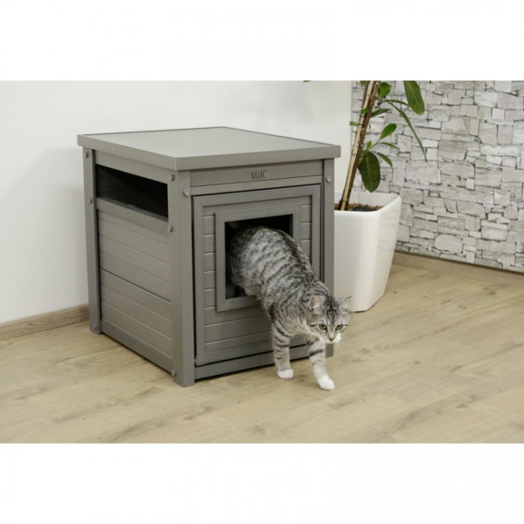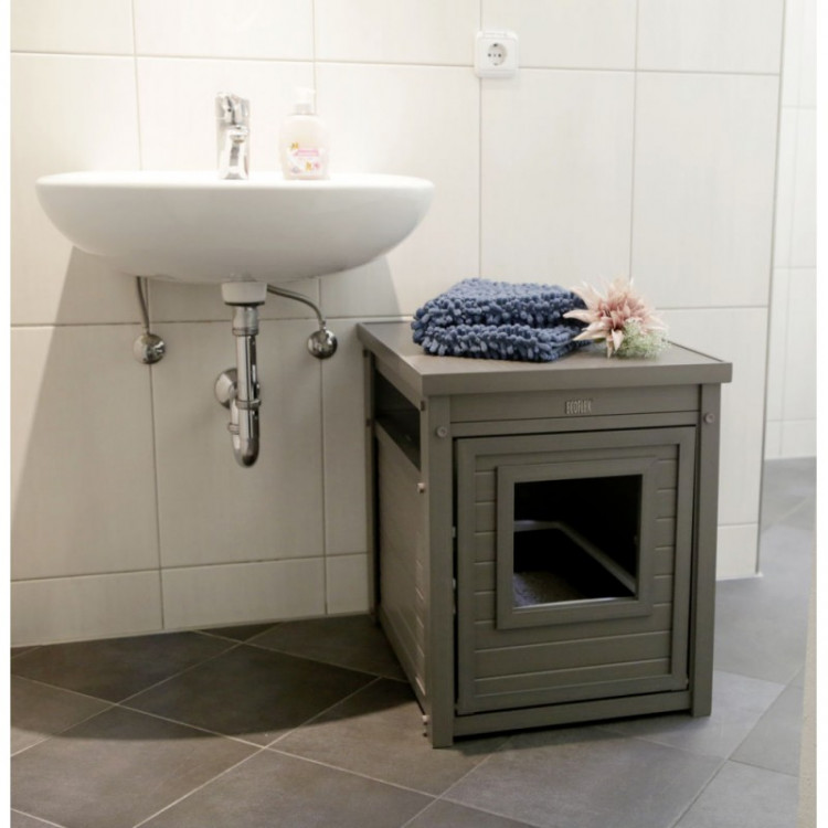Aspectul de dulap obișnuit se potrivește în casă și ține litiera pisicii discret, departe de priviri.