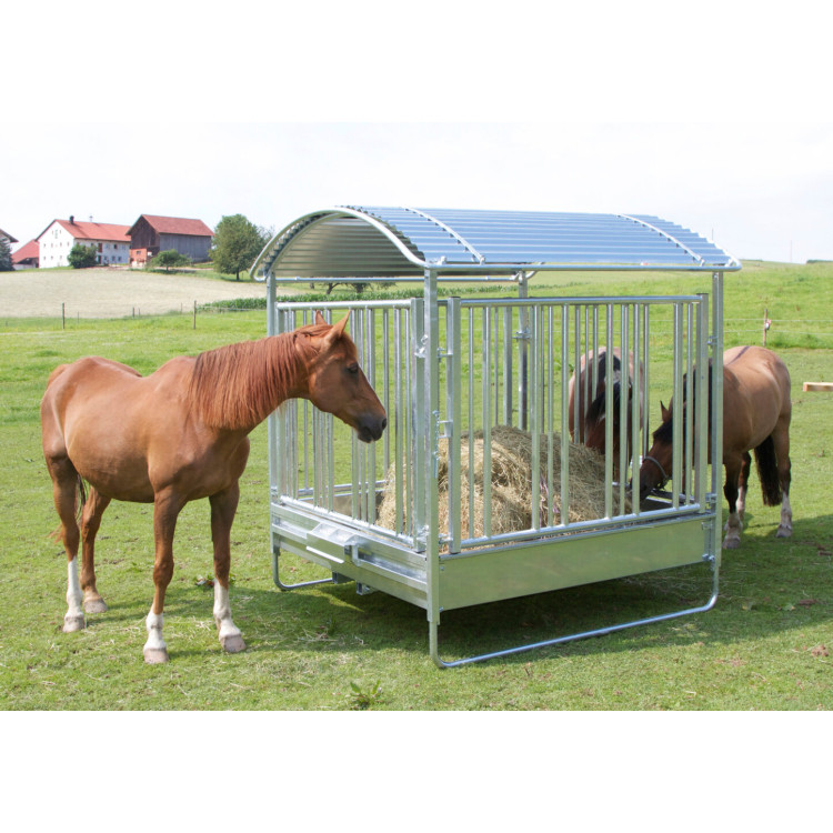 La hrănirea cu baloți, o parte din furaj se calcă sau se murdărește. Această hrănitoare pătrată pentru bovine și cai este concepută astfel încât pierderile să fie foarte mici. În practică, asta înseamnă un loc de hrănire mai curat și mai puțină risipă, mai ales iarna sau când hrăniți direct pe pășune.