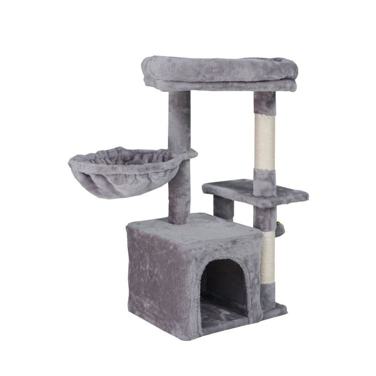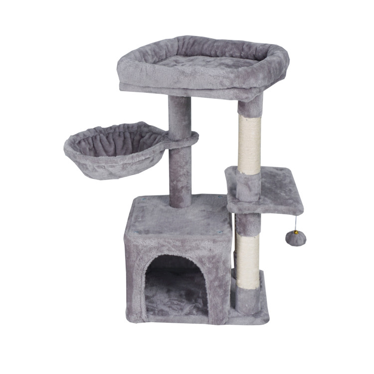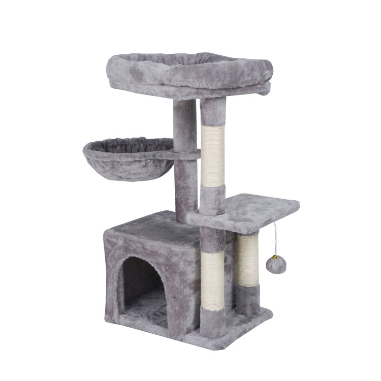 - Facilități pentru animalele dumneavoastră de companie : Stâlpul de zgâriat oferă mai multe locuri de odihnă - o căsuță complet utilată, un hamac și mai multe platforme ridicate.