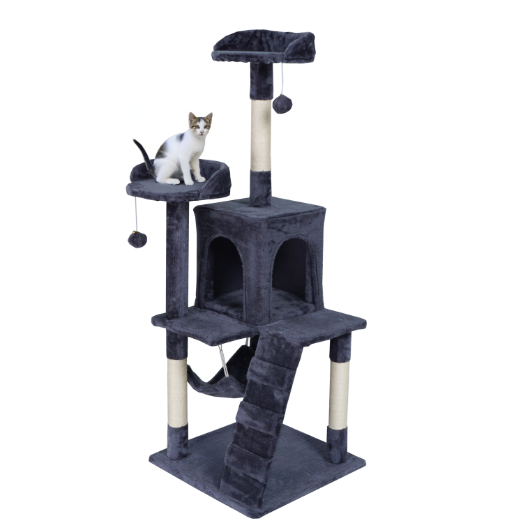 - Facilități pentru animalele dvs. de companie : Stâlpul de zgâriat oferă mai multe locuri de odihnă - o căsuță completă, mai multe platforme ridicate și chiar un hamac!