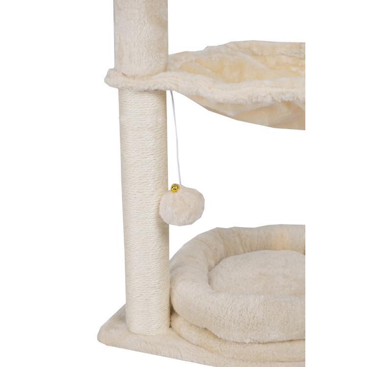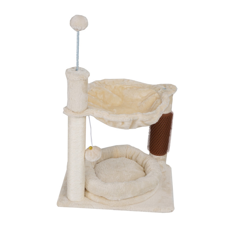 - Facilități pentru animalele dumneavoastră de companie : Stâlpul de zgâriat oferă două locuri de odihnă - un pat confortabil și un hamac.