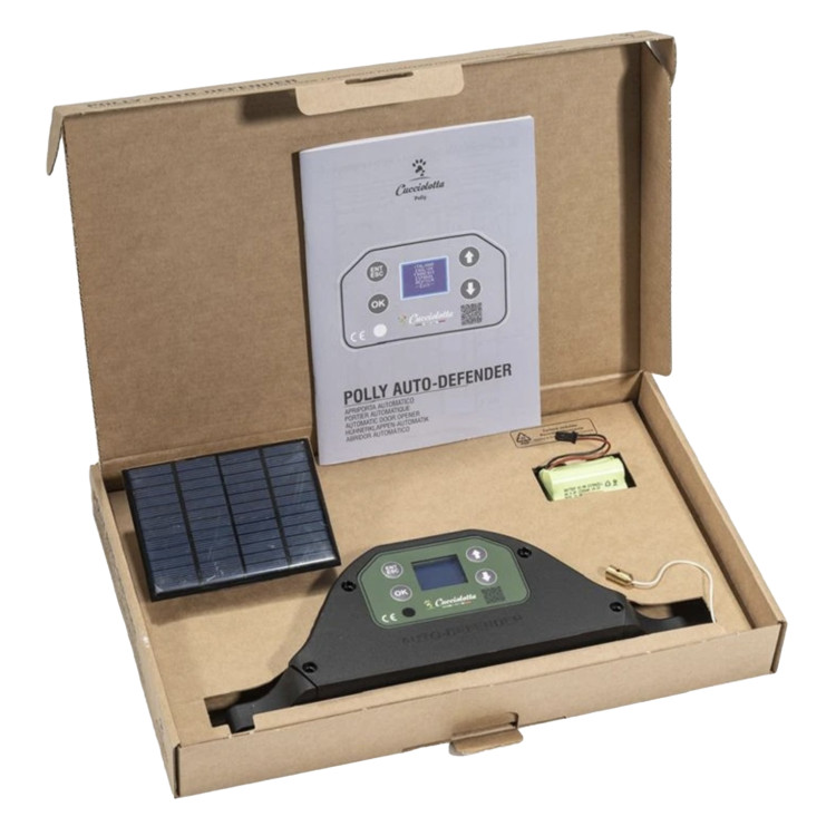Polly AutoDefender este o ușă automată modernă pentru coteț de găini , care vă va proteja găinile în fiecare zi – indiferent de anotimp, vreme sau absența dumneavoastră. Deschiderea și închiderea sunt complet automate , exact în funcție de setările alese de dumneavoastră – adică nivelul de lumină sau ora setată. Ușa se închide în siguranță seara, se deschide din nou dimineața – fără griji, fără grabă, fără riscuri. Pachetul complet include atât unitatea de control cu panou solar, cât și panoul ușii și șinele.
